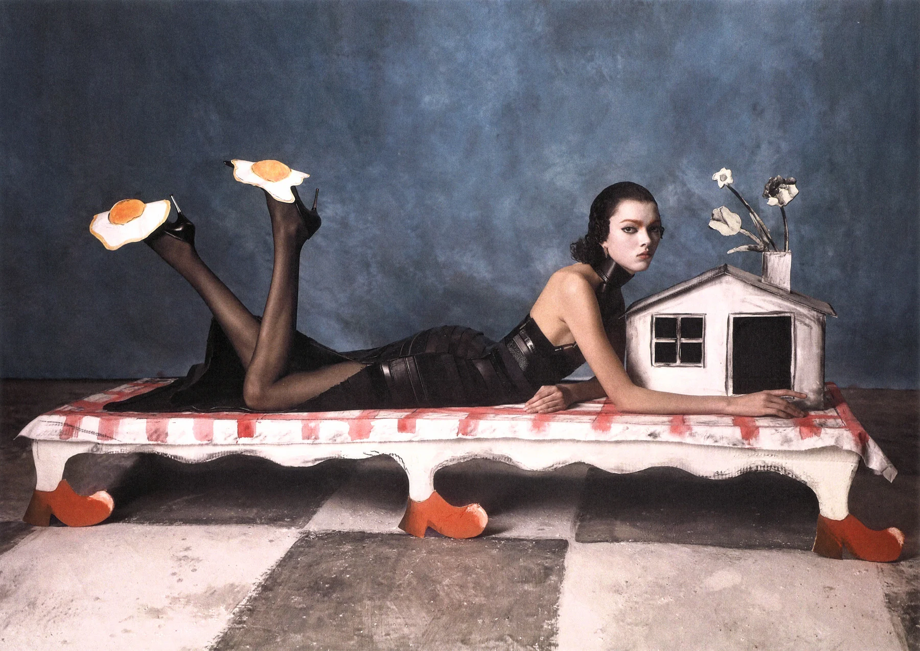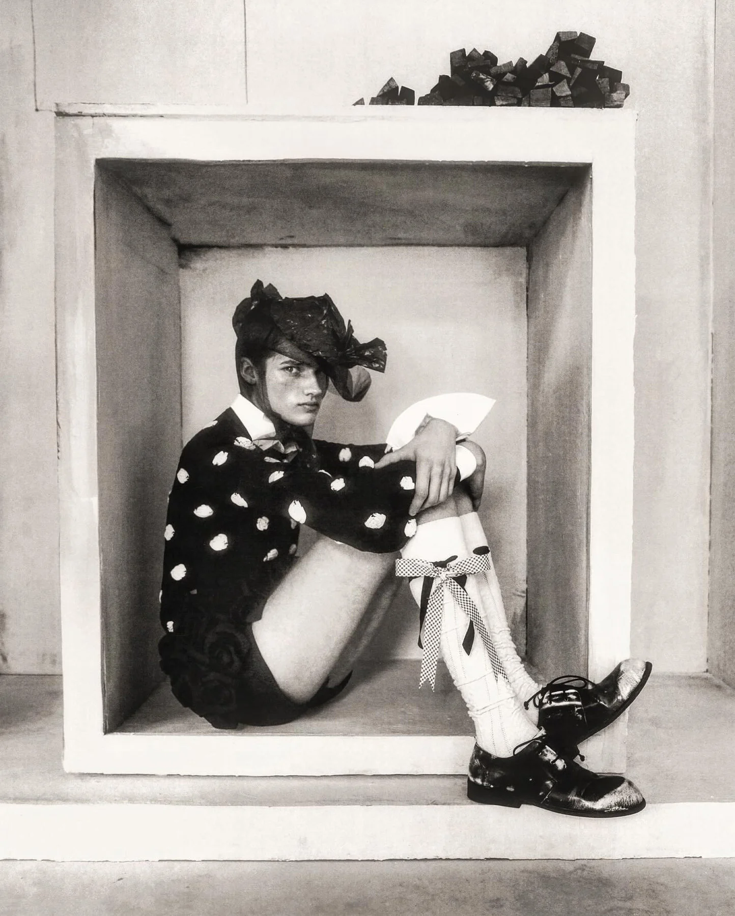 Szilveszter Makó’s photography unfolds like staged reveries — enigmatic, tactile, and meticulously composed. Born in Hungary and now based in Milan, he has developed a visual language that feels both grounded in art history and unmistakably contemporary. His subjects often appear within block-like environments or against flattened fields of color and texture, where garments, props, and architectural elements converge into scenes that suggest narrative without ever fully resolving it.